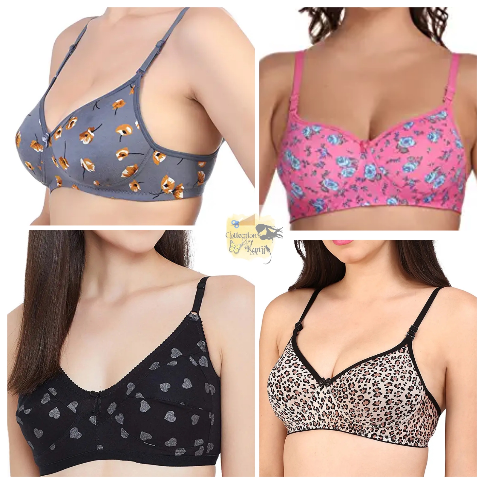 4 Pieces Standard Steach And Qualityful Stretchable Printed Bra For Womens And Girls